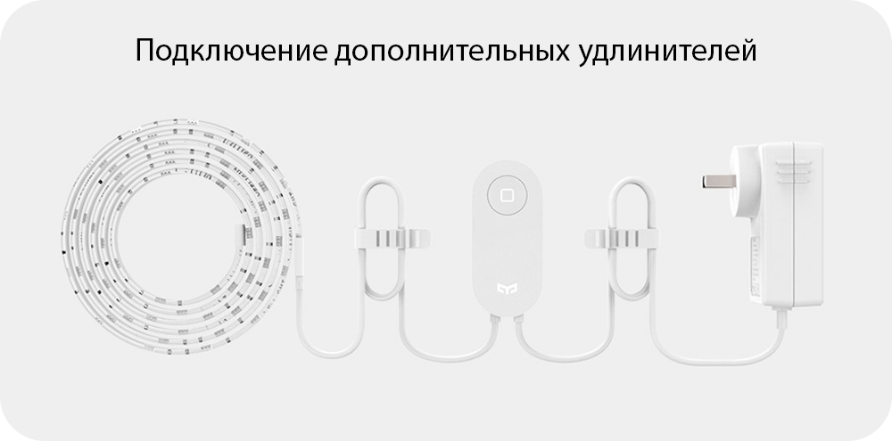 Длина основной ленты – 2м. Она может использоваться отдельно и создавать в доме волшебную атмосферу. По желанию базовую длину можно увеличить с помощью дополнительных метровых удлинителей, которые свободно подсоединяются к ленте. Максимально возможная длина – 10м. Обратите внимание, что удлинители не могут использоваться самостоятельно без базовой ленты. Светодиодная лента первого выпуска не поддерживает работу с удлинителями.